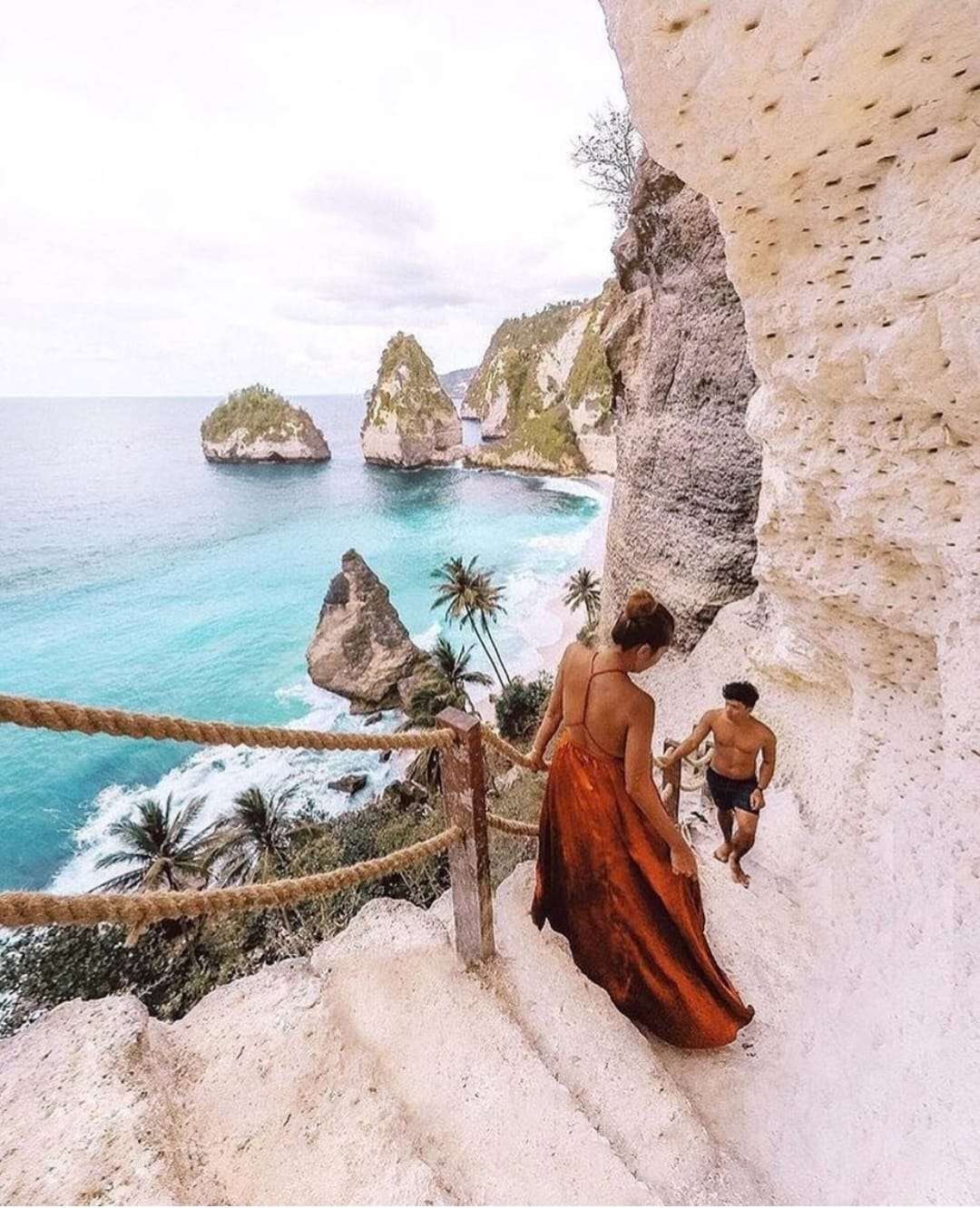 Atuh Beach is a beach located in the eastern area of Nusa Penida, is a new tourist spot that is very popular in Nusa Penida because this beach offers natural beauty with clear water and the atmosphere of the beach that surrounds the cliffs adds to this beauty. Beach. Atuh Beach is perfect for swimming with its white sand that makes the swimming atmosphere even more beautiful. To reach the beach location or can also go down the stairs that have been provided, it takes good stamina to be able to go down the road to the beach. No wonder this beach is very popular among domestic and foreign tourists because this beach is suitable for those who want to enjoy a quiet beach atmosphere, not crowded and the scenery around the beach is beautiful.